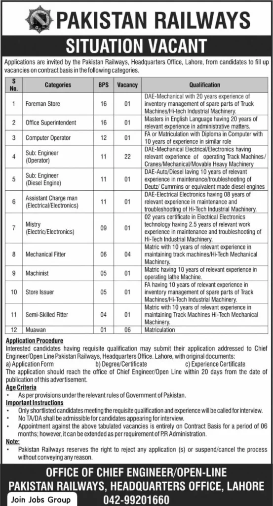 Eligibility Criteria for Pakistan Railway Headquarters Jobs