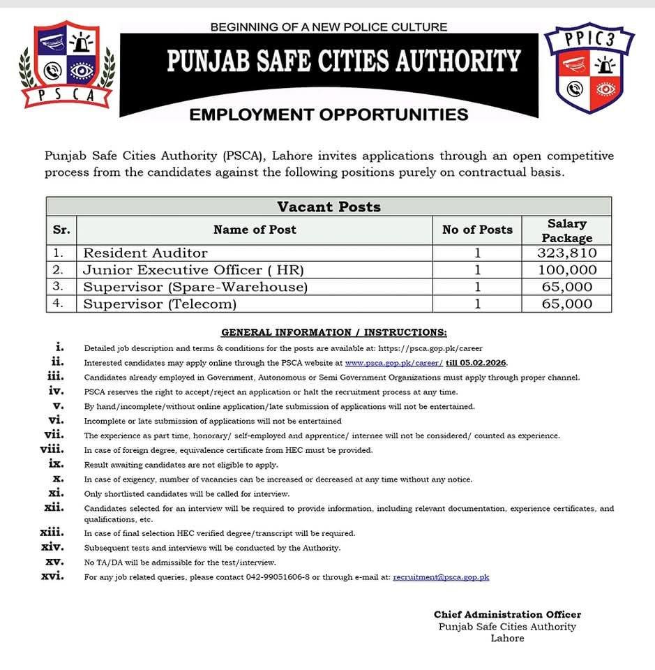 Do not wait for deadlines—view to latest openings, check to eligibility, and submit you are application today to secure your future with Punjab Safe Cities Authority.